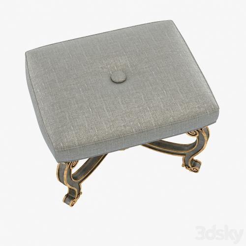 stool in baroque style. gray upholstery and aged gold on a wooden frame. the stack is not minimized. more information here http://www.turbosquid.com/3d-models/maya-bench-baroque-style-carved/928761 Baroque Style Carved Bench, Italy c.1890, Silver Gilt, Painted Finish. The exuberant profile of this bench reflects the fantastic quality known as Baroque with its exaggerated curved legs that sweep inward to join at the centre in a raised centre section topped with a finial. Framed between the four sections crea