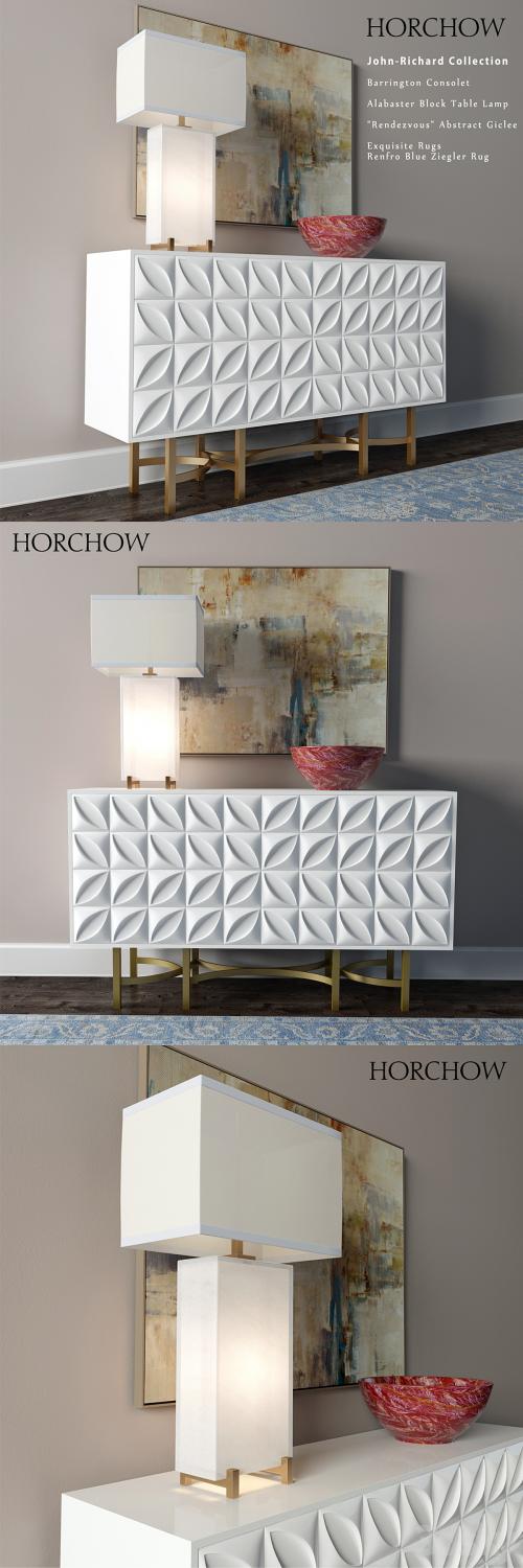 Set subjects Horchow John-Richard Collection dresser-Barrington Console 61 "W x 16" D x 36 "T lamp-Alabaster Block Table Lamp 17" W x 10 "D x 31" T kartina- "Rendezvous" Abstract Giclee carpet-Exquisite Rugs Renfro Blue Ziegler Rug, a 9 'x 12' Archival max2012 + FBX + library materials