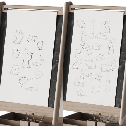 3d model: Easel / tablet / drawing board for nursery / for children CB2 Wooden Kids Art Easel by Crate&kids / Crate&Barrel for kids / nursery / child room