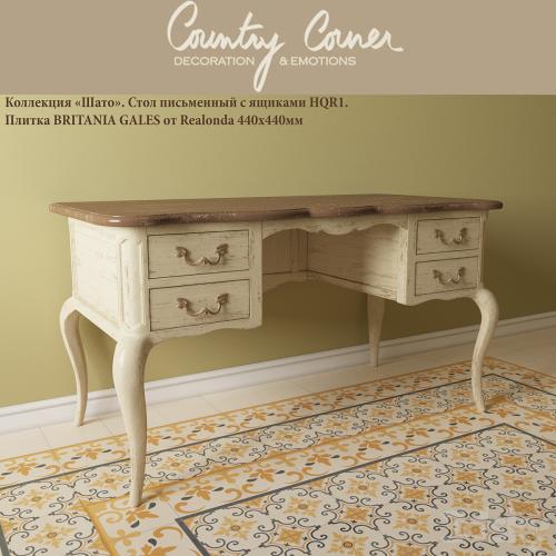 1.Stol desk with drawers HQR1 Manufacturer: COUNTRY CORNER Collection: Château manufacturing Material: Solid spruce Dimensions: 1520h780h750mm http://www.kremdoor.ru/mebel-Provence/kollekciya-Chateau.html 2.Plitka Manufacturer: Realonda Collection: BRITANIA GALES Dimensions: 440h440mm