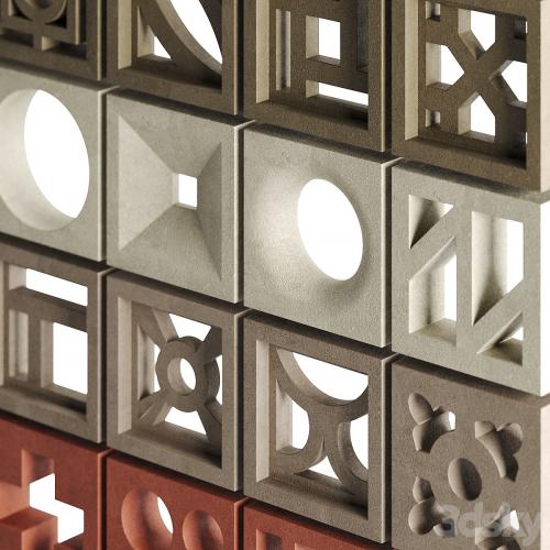 Breeze blocks of cement. Suitable for making decorative partitions, bar counters, reception desk decoration, etc. Can be folded into various compositions.