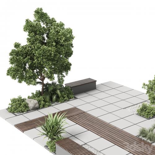 Urban Environment - Urban Furniture - Green Benches With plants 30 corona