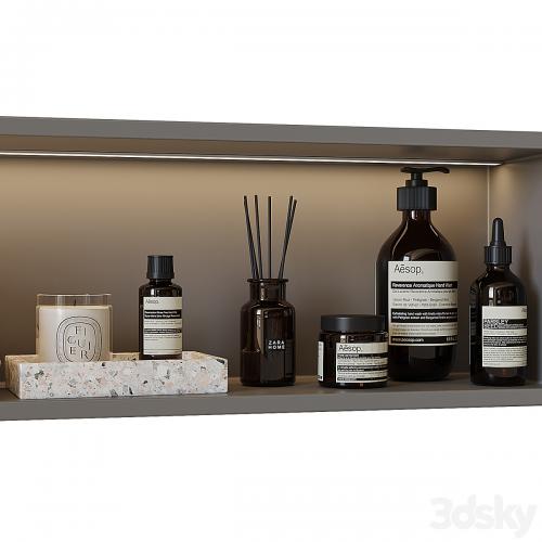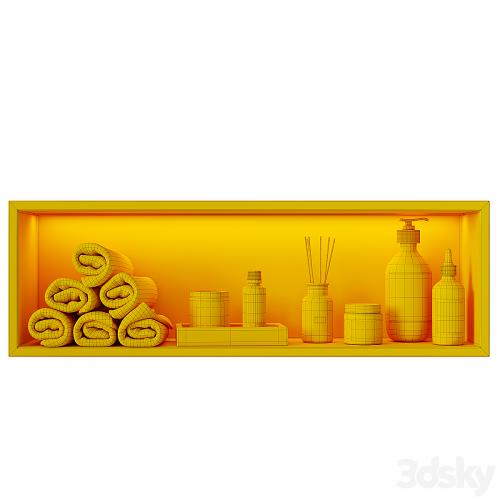 Shelf - a niche above the installation with a toilet bowl with a decorative set.