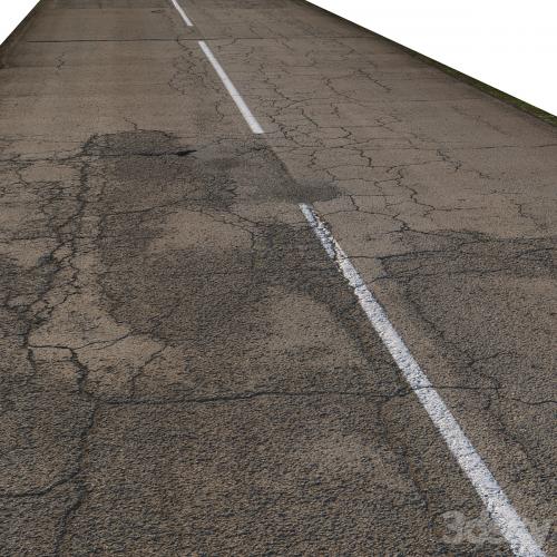 A two-lane road made of old asphalt with cracks, some short grass along the edges. The model was created using a photo scan of a real object. About 1000 high-quality photos were used during creation. High detail allows you to render the road up close, and a large length reduces the effect of tiling on wide frames.