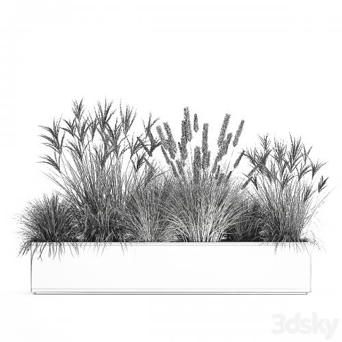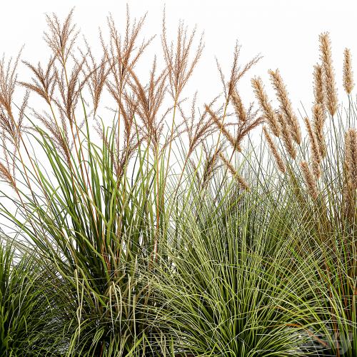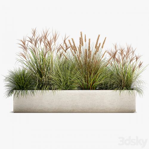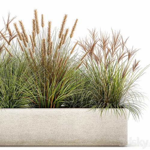植物盆栽 矮割大穗草,芦苇,花坛,园林景观,灌木。Set 1074。