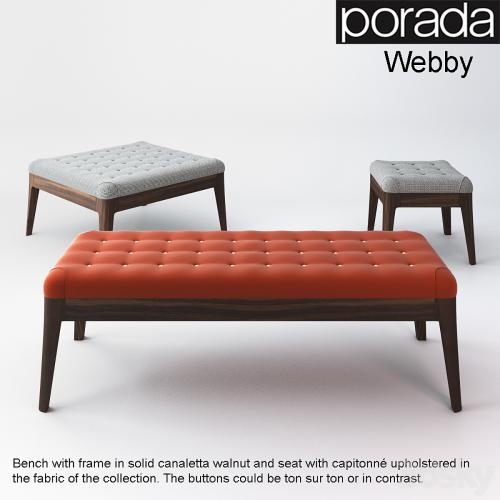 Bench with frame in solid canaletta walnut and seat with capitonne upholstered in the fabric of the collection. The buttons could be ton sur ton or in contrast. Design: C. Ballabio Ray render and materials. Materials are used only in 3ds max. Designed with 3ds max 2012. Available for Autodesk Max 2012 and above. All textures of a material for Porada Webby models are included in Porada_Webby rar. file. SCENE IS NOT INCLUDED !!!