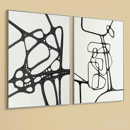 Set of paintings in frames for interior