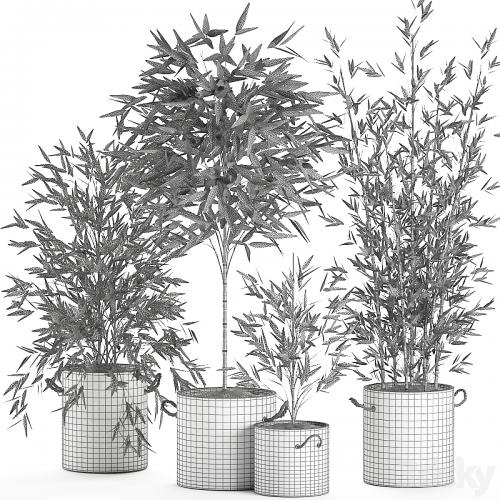 一组美丽的细密竹丛盆栽,配有竹制把手。Set 596。