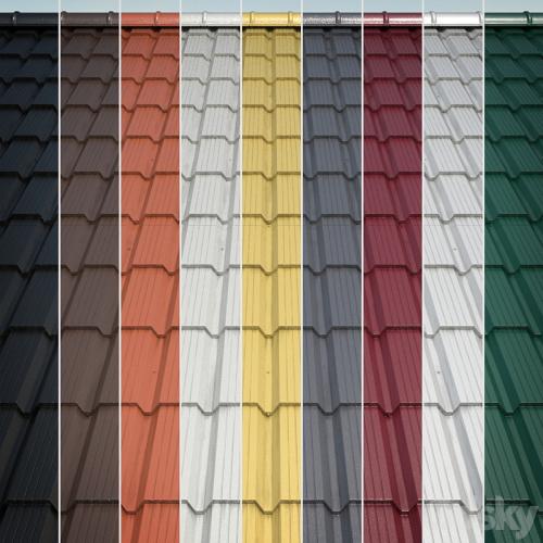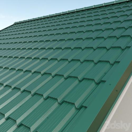 A metal sheet has a substrate, in edit poly it is enough to hide the roof geometry, leaving only the substrate (Plane), and lay out the sheets as Instance along the perimeter of the roof, if necessary, apply the slice modifier to the group of selected elements, then make Unhide All in edit poly.