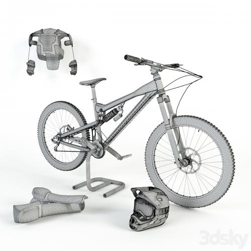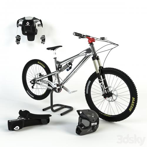 Professional bike friraydny Intense SS 2009. Wheels 26 inches, weighed sram x0. Helmet, body protection and knee-shin sixsixone. Mask SPY ZED. The model 1,321k 925k polygons and points. Stack been collapsed.