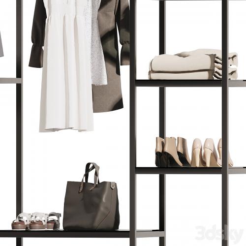 clothes, shoes, wardrobe, shoes, decor, pampas grass, paintings, vases, bags, shirts, cabinets, decorative set