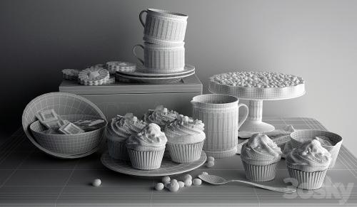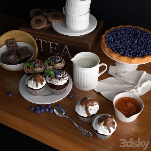 Kitchen Set - blueberry pie, cakes, apricot jam and chocolate model stored in the 2010 version, the archive copy in the FBX, texture and preview. All objects in the scene, textures and materials referred to in English, have logical and individual names. The model has a real scale, it is at the origin Poiys: 461 918 Verts: 308 933 Delicious renders you!