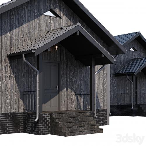 Despite the gloomy appearance of this house, it will look picturesquely both in a deep, impenetrable forest, and it will be advantageous to stand out in a country or cottage village. The roof is made with geometry.