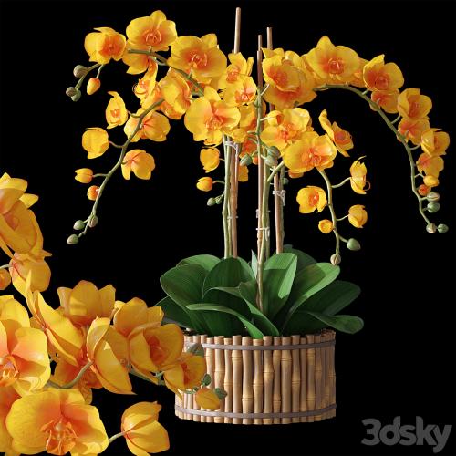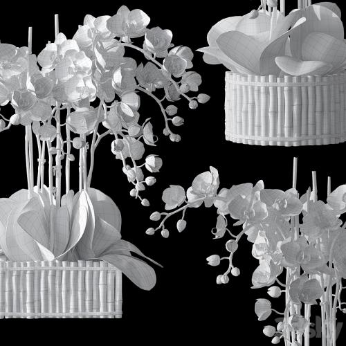 orchids in bamboo pots