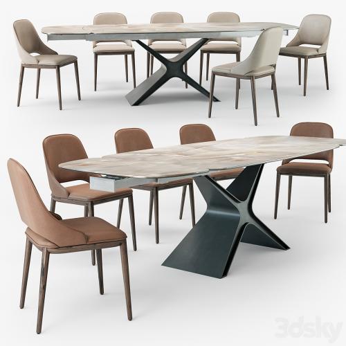 Calliope table combines the beauty of steel, its strength and durability, its feeling of modernity, with the luxury of ceramic, glass, or porcelain.