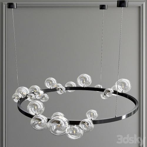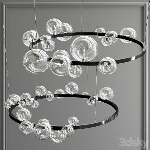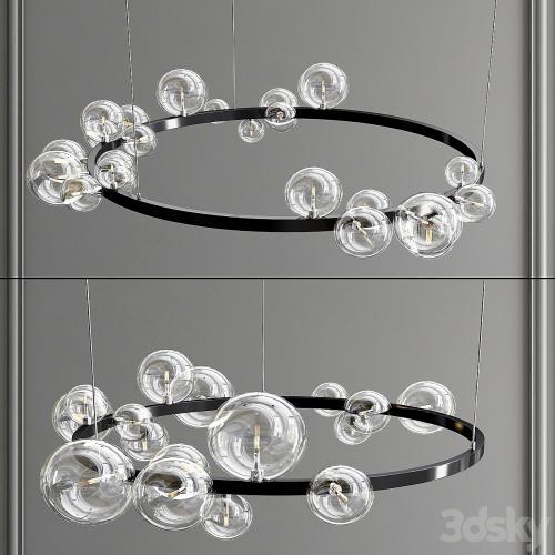 Design ring chandelier with asymmetrically arranged glass shades of different diameters
