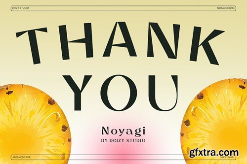 Noyagi - Vintage Japanese Pop Font Noyagi is the perfect typeface to transport your audience to the enchanting world of vintage Japanese aesthetics. This unique font captures the essence of retro Japan with a modern twist, making it ideal for a wide range of creative projects. Noyagi features: Uppercase & Lowercase Punctuation & Numbers Multilingual Support Alternates File Include: OTF & TTF Elevate and explore the design possibilities with this Japanese Pop font!