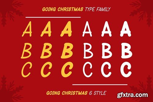 Introducing our new product Going Christmas - Christmas Family Font This font Family is specifically designed to create a Christmas atmosphere and mood. It is often used in graphic design, greeting cards, posters, and various other visual elements related to the celebration of Christmas. availlable Style*