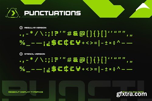 Regbout - Futuristic Stencil Font Regbout - Futuristic Stencil Font is a cutting-edge typeface that effortlessly blends modern aesthetics with a touch of industrial design. This versatile font family is designed to make your projects stand out, giving them a futuristic, high-tech look that captures attention and leaves a lasting impression. Regbout features: Character Set Variable: Regular & Stencil Punctuation & Numbers Multilingual Support File Include: TTF & OTF Elevate and explore the design possibilities with this Stencil font!