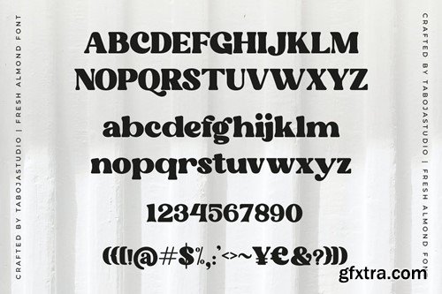Fresh Almond crafted with precision, our Fresh Almond Serif Font adds a touch of class to any project, be it logos, branding, print materials, or web design. It’s sleek and elegant lines exude professionalism, while the subtle groovy elements inject a hint of playfulness, making it perfect for a wide range of design applications. With its balanced proportions and distinctive serifs, this font ensures readability and visual appeal across various mediums. Elevate your designs with the perfect blend of sophistication and groove – try our Fresh Almond Serif Font today and let your creativity flow seamlessly across all your projects. Fresh Almond Features: We highly recommend using a program that supports OpenType features and Glyphs panels such as Adobe Illustrator, Adobe Photoshop CC, Adobe Indesign, or CorelDraw, so you can see and access all Glyph variations. While using this product, if you encounter any problem or spot something we may have missed, please don't hesitate to drop us a message. We'd love to hear your feedbacks in order to further fine-tune our products. Stay creative and have a wonderful day.