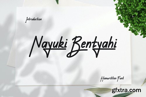Nayuki Bentyahi is a unique display typeface perfect for titles, large text, branding, logotypes & graphic design purposes such as posters, pamphlets, and advertisements. This letter font can be a great choice for creating amazing logos, promotional content, and marketing presentations that can bring uniqueness and freshness at its best. FEATURES TTF/OTF/WOFF Uppercase and Lowercase letters Numbering and Punctuations Alternate Support Adobe Illustrator, Adobe Photoshop, Adobe InDesign, also works on Microsoft Word For buyers, thank you for using our font. We hope our work can help you create creative ideas.