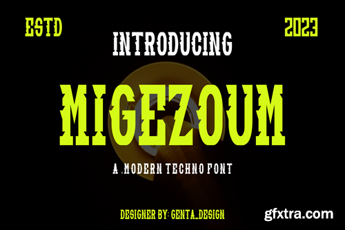 Introducing our new product Migezoum - Modern Font Modern Font Migezoum - Modern Font - Modern Font is a bold and authentic display font. The font is suitable for any branding project like logo, t-shirt printing, esport, and many more. outstanding in a wide range of contexts. Files How to instal fonts Features Images are not included, for presentation only Contact & Support Thank you for making your first purchase with Genta_design. If you have any questions, please contact us, we are happy to help! Don't forget to visit our Genta_design shop for more cool designs. Enjoy your create. :)