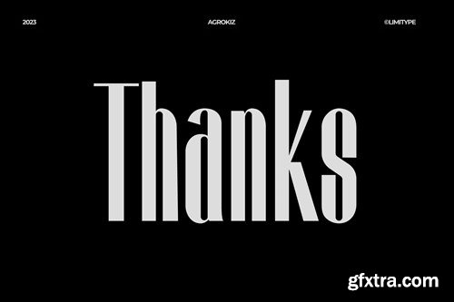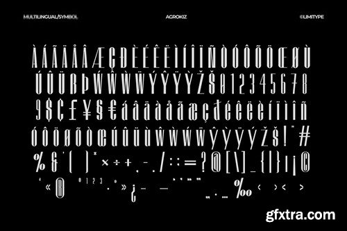 Agrokiz is a typeface designed for display and design needs that require large text such as magazine headlines, banners, etc. With its modern form, this typeface is quite applicable for various media and design styles. Agrokiz is equipped with: