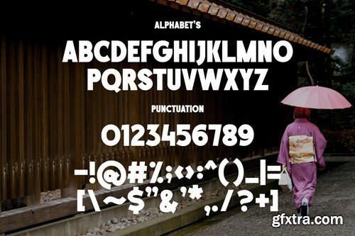 is a bold font with some of the glyphs made to resemble Japanese culture. the most prominent of them are J, K, S. Actually, this font can be used more widely, depending on what you want to use. Fonts are available in .OTF and .TTF formats. Thank You