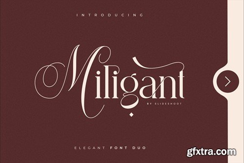 Miligant Font is a stunning combination of a calligraphy script font and a modern serif font. He has a beautiful character. Very suitable to be combined with invitation card designs, company logos, film titles, film names, business cards, book titles, brand names and various other designs. Miligant Font is a stunning combination of a calligraphic script font and a sleek modern serif font that exudes sophistication and elegance. Its stylish alternation and binding make this font the perfect partner for any project. FEATURE : -TTF/OTF -WOFF/WOFF2 Hope you like it. Thank You.