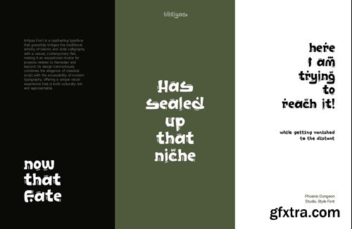 Imtiyas Font is a captivating typeface that gracefully bridges the traditional artistry of Islamic and Arab calligraphy with a casual, contemporary flair, making it an exceptional choice for projects related to Ramadan and beyond. Its design harmoniously combines the elegance of classical script with the accessibility of modern typography, offering a unique visual experience that is both culturally rich and approachable. What’s in the package : Thank you