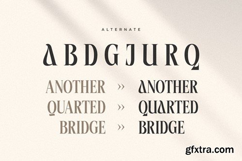 Qualera is an Unique Display Logo Font is a Modern Display font for Luxury, Elegant, and Beauty Logo and Branding needs, with Cool style touch, font that you can combine to get any variations and unique shapes easily just in seconds with choose alternates of them. It is a serif display font with moderate contrast that perfect for branding projects, logo, wedding designs, social media posts, advertisements, product packaging, product designs, label, photography, watermark, invitation, stationery, and any projects, it makes with a high level of legibility. What's Included: Recommended using Adobe Illustrator or Adobe Photoshop. Wish you enjoy our font. :)
