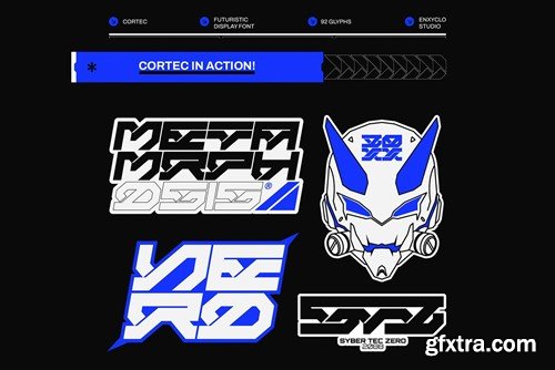 Make your work bolder with CORTEC, the ultimate futuristic mecha typeface inspired by industrial and mecha-robotics. This stunning and powerful font cuts through the noise, bringing a bold industrial edge to your designs. With its sleek and futuristic design, CORTEC is perfect for clothing, album artwork, posters, headlines, and logotypes. Add CORTEC to your design toolkit today and unleash the cutting-edge style of this versatile font. FEATURES True Type Font (TTF) Open Type Font (OTF) Web Open Font Format (WOFF1 & WOFF2) Contains 96 glyphs Uppercase, Numeral, Punctuation & Symbols