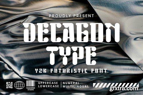 Presenting Decagon Type - Y2K Futuristic Display Font by Rasiorise Studio The font Decagon Type is now available for people searching for a futuristic Y2K font. The Sci-Fi, Cyberpunk, Hyperbeast, and Mecha font styles and Decagon shape served as inspiration for this design. included as the Uppercase and lowercase regular character, Numeral and multilingal support, were combined to give the typeface a bolder appearance. FEATURES : FILES INCLUDED : Thank You