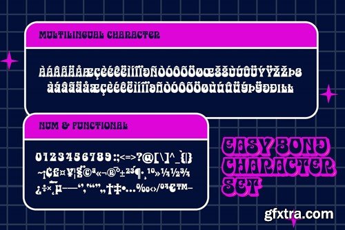 Easy Bond is unique and versatile serif display font. This font can give your designs a playful and friendly impression. Come with more alternate, ligature and already support multilingual character. Easy Bond separate in reguler and italic, is a beautiful choice for any creative endeavor, creating fun, modern, chic, lifestyle design such as logos, title, cover, branding, business project, corporate project, packaging, display, magazine and more design project with playful taste. What you have: Fonts include Multilingual Support for: Afrikaans, Albanian, Asu, Basque, Bemba, Bena, Breton, Chiga, Cornish, Dutch, English, Estonian, Filipino, Finnish, Friulian, Galician, Gusii, Indonesian, Irish, Italian, Kabuverdianu, Kalenjin, Kinyarwanda, Luo, Luxembourgish, Luyia, Machame, Makhuwa-Meetto, Makonde, Malagasy, Manx, Morisyen, North, Ndebele, Nyankole, Oromo, Portuguese, Quechua, Romansh, Rombo, Rundi, Rwa, Samburu, Sango, Sangu, Scottish, Gaelic, Sena, Shambala, Shona, Soga, Somali, Spanish, Swahili, Swedish, Swiss, German. Thank you for your purchase! Hope you enjoy with our font!