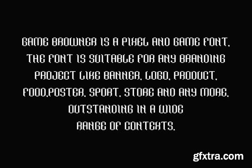 Game Browner Font is a decorative and authentic display font. The font is suitable for any branding project like poster, logo, sport, and many more. Outstanding in a wide range of contexts. Included
