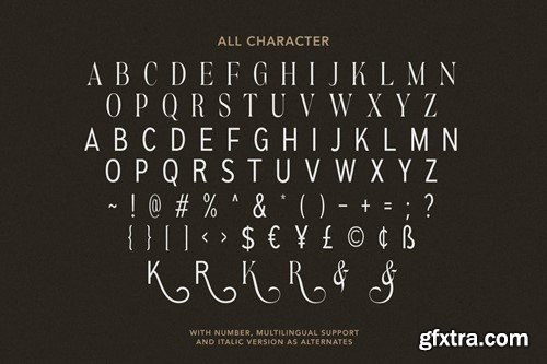 Black Charms is a classy and fancy font that combine sans and serif in one font. With sans as uppercase dan serif as lowercase. You can use the lowercase and uppercase in the same word that will make your text more attractive! With the italic version as the alternates which mean you can combine it all without worrying about the kerning! You can use this font for the magazine, poster, and suitable for headline. This font also support multi language. You will get OTF/TTF file that you can install and use in any software designs especially Adobe Photoshop and Adobe Illustrator.