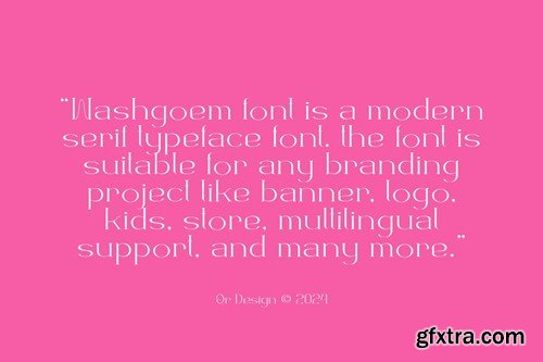 Washgoem Font is a serif and authentic display font. The font is suitable for any branding project like stylish, poster, logo, sport, and many more. Outstanding in a wide range of contexts. Included Main Features