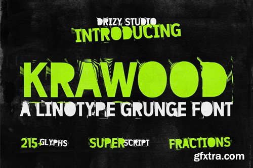Krawood - Linotype Grunge Font Krawood, a distinctive entry in the Linotype Grunge Pointillism Font collection, embodies the raw energy and unpredictable nature of urban street art, merging it with the meticulous nuances of pointillism. This font stretches the boundaries of traditional typography, introducing a design that is as chaotic as it is controlled, as rough as it is refined. Krawood features: Character Set (All Caps) Punctuation & Numbers Multilingual File Included: OTF & TTF Elevate and explore the design possibilities with this Grunge Font!