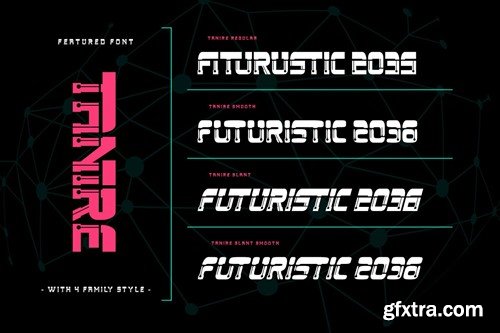 Embrace the evolution of typography with Tanire, a futuristic technology font that stretches the boundaries of future aesthetics. Designed to lead change and provide innovative visuals, Tanire represents the perfect marriage between modern design and the essence of high technology. With dynamic timelines and sophisticated details, each Tanire letter creates a dazzling display, depicting the speed and sharpness of emerging technology. This font is the perfect choice for design projects that want to celebrate the cutting edge of the world of technology, from web design to the latest products. Tanire's uniqueness lies in his ability to visualize futuristic concepts with clarity and appeal. From movie titles to leading technology brand identities, Tanire provides an innovative typographic canvas to bring your vision to life. With Tanire, bring a future feel to your designs and introduce inspiring visuals. Explore the limitless potential of technology and let Tanire be your guide to bring an unforgettable futuristic touch to each of your projects. What’s Included: