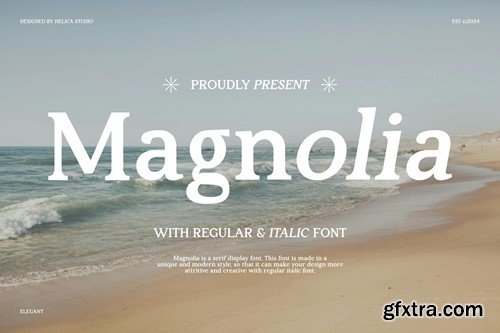 Magnolia Serif Font typeface is perfect for crafting elegant quotes, stunning logos, captivating magazine headers, and so much more. Main Features THANK YOU HELICA STUDIO.