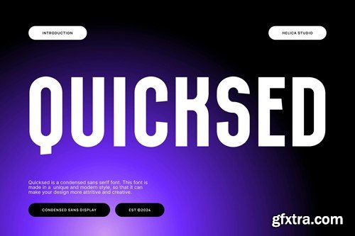 Quicksed Condensed Sans Display Font typeface is perfect for crafting elegant quotes, stunning logos, captivating magazine headers, and so much more. Main Features THANK YOU HELICA STUDIO.