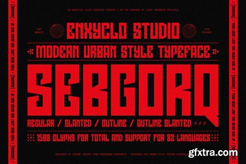 NCL SEBGORQ is a modern urban display font. Masterfully designed to become a true favorite, this font has the potential to bring each of your creative ideas to the highest level! It was purposely crafted to be used in large point sizes, although it doesn’t lose its magic in small point sizes. It is perfect for wedding, headline, billboard, magazines, website, titles, poster, branding, and logos. No matter the topic, this font will be an incredible asset to your fonts’ library, as it has the potential to elevate any creation. With this beautiful font, absolutely you can make your project stand out from the rest. FEATURES True Type Font (TTF) Open Type Font (OTF) Web Open Font Format (WOFF1 & WOFF2) 4 Style: Regular, Slanted, Outline, Outline Slanted Contains 373 Glyphs for Each Style and 1508 Glyphs for Total Uppercase & Lowercase Numeral, Punctuation & Symbols Stylistic Set 1-2 Support for 82 Languages: Afrikaans, Albanian, Asu, Basque, Bemba, Bena, Breton, Catalan, Chiga, Cornish, Czech, Danish, Dutch, Embu, English, Esperanto, Estonian, Filipino, Finnish, French, Friulian, Galician, Gusii, Hungarian, Indonesian, Irish, Italian, Kabuverdianu, Kalenjin, Kamba, Kikuyu, Kinyarwanda, Latvian, Lithuanian, Lower Sorbian, Luo, Luxembourgish, Luyia, Machame, Makhuwa-Meetto, Makonde, Malagasy, Manx, Meru, Morisyen, North Ndebele, Norwegian Bokmål, Norwegian Nynorsk, Nyankole, Oromo, Polish, Portuguese, Quechua, Romansh, Rombo, Rundi, Rwa, Samburu, Sango, Sangu, Scottish Gaelic, Sena, Shambala, Shona, Slovak, Soga, Somali, Spanish, Swahili, Swedish, Swiss German, Taita, Teso, Turkish, Upper Sorbian, Uzbek (Latin), Volapük, Vunjo, Walser, Welsh, Western Frisian, Zulu.