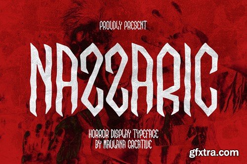Nazzaric horror display font. Bold stroke, fun character with a bit of ligatures and alternates. To give you an extra creative work. Nazzaric grunge horror display font support multilingual more than 100+ language. This font is good for logo design, Social media, Movie Titles, Books Titles, a short text even a long text letter and good for your secondary text font with script or serif. Make a stunning work with Nazzaric horror display font. What you get: – Nazzaric (OTF) – Nazzaric (TTF) – Nazzaric (WOFF) Cheers, Maulana Creative