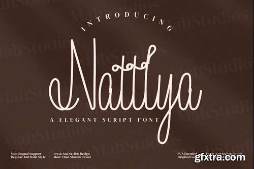 Nattlya - Elegant Script Font, from MAH Studios, is a premium Script Font, perfect for any project that requires a distinctive, and premium feel. ============================================================ What’s Included : Chemicalling (OTF/TTF/WOFF)* Web Font Ligature, Alternate & Multilingu Works on PC & Mac Simple installations Accessible in the Adobe Illustrator, Adobe Photoshop, Adobe InDesign, even work on Microsoft Word. PUA Encoded Characters – Fully accessible without additional design software. Fonts include support for 65 languages ; Afrikaans, Albanian, Asu, Basque, Bemba, Bena, Breton, Catalan, Chiga, Cornish, Danish, Dutch, English, Faroese, Filipino, French, Friulian, Galician, German, Gusii, Indonesian, Irish, Italian, Kabuverdianu, Kalenjin, Kinyarwanda, Luo, Luxembourgish, Luyia, Machame, Makhuwa-Meetto, Makonde, Malagasy, Manx, Morisyen, North Ndebele, Norwegian Bokmål, Norwegian Nynorsk, Nyankole, Oromo, Portuguese, Quechua, Romansh, Rombo, Rundi, Rwa, Samburu, Sango, Sangu, Scottish Gaelic, Sena, Shambala, Shona, Soga, Somali, Spanish, Swahili, Swedish, Swiss, German, Taita, Teso, Uzbek (Latin), Volapük, Vunjo, Zulu, ============================================================