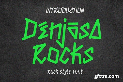 Denjasa Rocks is a unique display typeface perfect for titles, large text, branding, logotypes & graphic design purposes such as posters, pamphlets, and advertisements. This letter font can be a great choice for creating amazing logos, promotional content, and marketing presentations that can bring uniqueness and freshness at its best. FEATURES TTF/OTF/WOFF Uppercase and Lowercase letters Numbering and Punctuations Support Adobe Illustrator, Adobe Photoshop, Adobe InDesign, also works on Microsoft Word For buyers, thank you for using our font. We hope our work can help you create creative ideas.