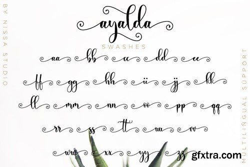 Ayalda is a classy and elegant handwritten font with beautiful swashes. Get inspired by its unique look, and turn any design idea into a true standout! What's Included: PUA encoded = Accessible in the Adobe Illustrator, Adobe Photoshop, Adobe InDesign, even work on Microsoft Word. PUA Encoded Characters - Fully accessible without additional design software. Each Font Has: PUA Encoded Characters - Fully accessible without additional design software.