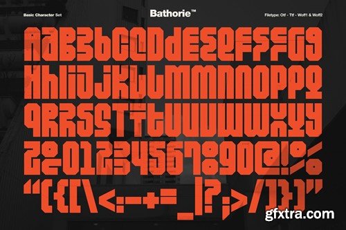 Introducing Bathorie: Where Industrial Precision Meets Brutalist Edge Step into a world where typography meets structure, where every letter echoes the precision of industrial design and the raw, unapologetic strength of brutalist architecture. Bathorie, our latest creation, is not just a typeface; it's an experience—a journey into the bold and unyielding. Bathorie's foundation lies in its rigid octagonal shape, meticulously crafted with 45-degree cuts that demand attention. Each letter is a testament to the precision found in industrial settings, translating into a typeface that stands tall in the realm of design. The geometric harmony of Bathorie brings a touch of elegance to its robust form. Inspired by the clean lines and balanced proportions of brutalist architecture, this typeface transcends the ordinary, making a statement that resonates in the modern design landscape. What you get : Features : Whether you're crafting a logo, designing a website, or creating impactful headlines, Bathorie adapts to your creative vision. Its versatility makes it a powerful tool for designers seeking a bold, contemporary edge in their projects. Happy Designing!