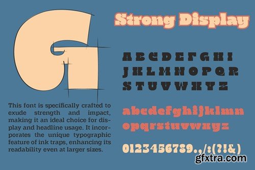 The "Strong Display Font" is a derivative of the Clinto slab serif font, originally designed by. Faldy Kudo. This font is specifically crafted to exude strength and impact, making it an ideal choice for display and headline usage. It incorporates the unique typographic feature of ink traps, enhancing its readability even at larger sizes. The font family comprises 6 distinct styles: "Normal, Normal Rounded, Medium, Medium Rounded, Condensed, and Condensed Rounded.” offering versatility in design choices. Additionally, the font provides multi-language support, ensuring that it can be effectively used for a wide range of global content and projects.
