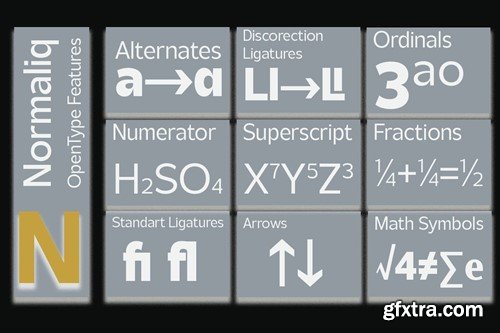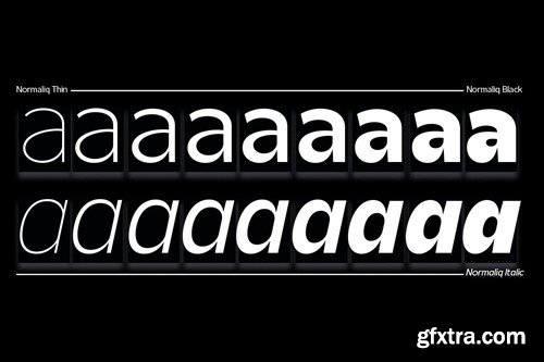 Normaliq is a geometric and modern sans serif family that exudes a unique and minimalist charm. comes in nine weights, ranging from Thin to Black, combined with an Italic style, as well as the addition of Black Outline and Black Italic Outline. The balance of hard lines and subtle curves provides strength and eye-catching for every weight of the family. Each font in the family can stand alone, dynamic and authoritative. This font family offers versatility for a variety of design needs, designed specifically for looks such as titles, branding, logos, books, branding and other impactful editorial work. Files : Features :