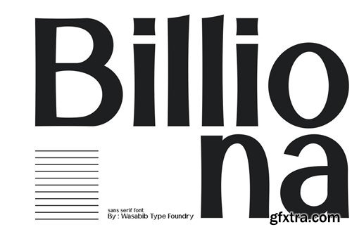 BILLIONA - is a modern sans serif for everyone. the font was designed considering modern visual aesthetics and needs in mind. universal use is one of the key targets of this font. is fits paragraphs and titles. works great on print materials and digital displats. compact size and modern web-font formats make it great for web-pages as well. otf, ttf, woff are included.